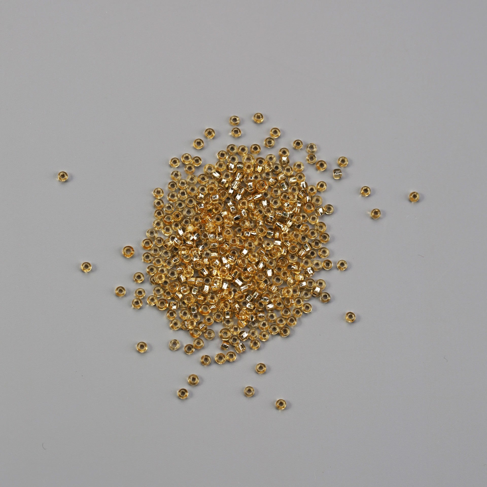 Make your own jewellery and embellish your craft projects with these clear/gold lined glass seed beads. Each measures 2mm and the pack contains approximately 300 beads, easy to attach to projects using thread or glue to add some shimmer. Also perfect for wiring on or combining with other beads to create your own jewellery.