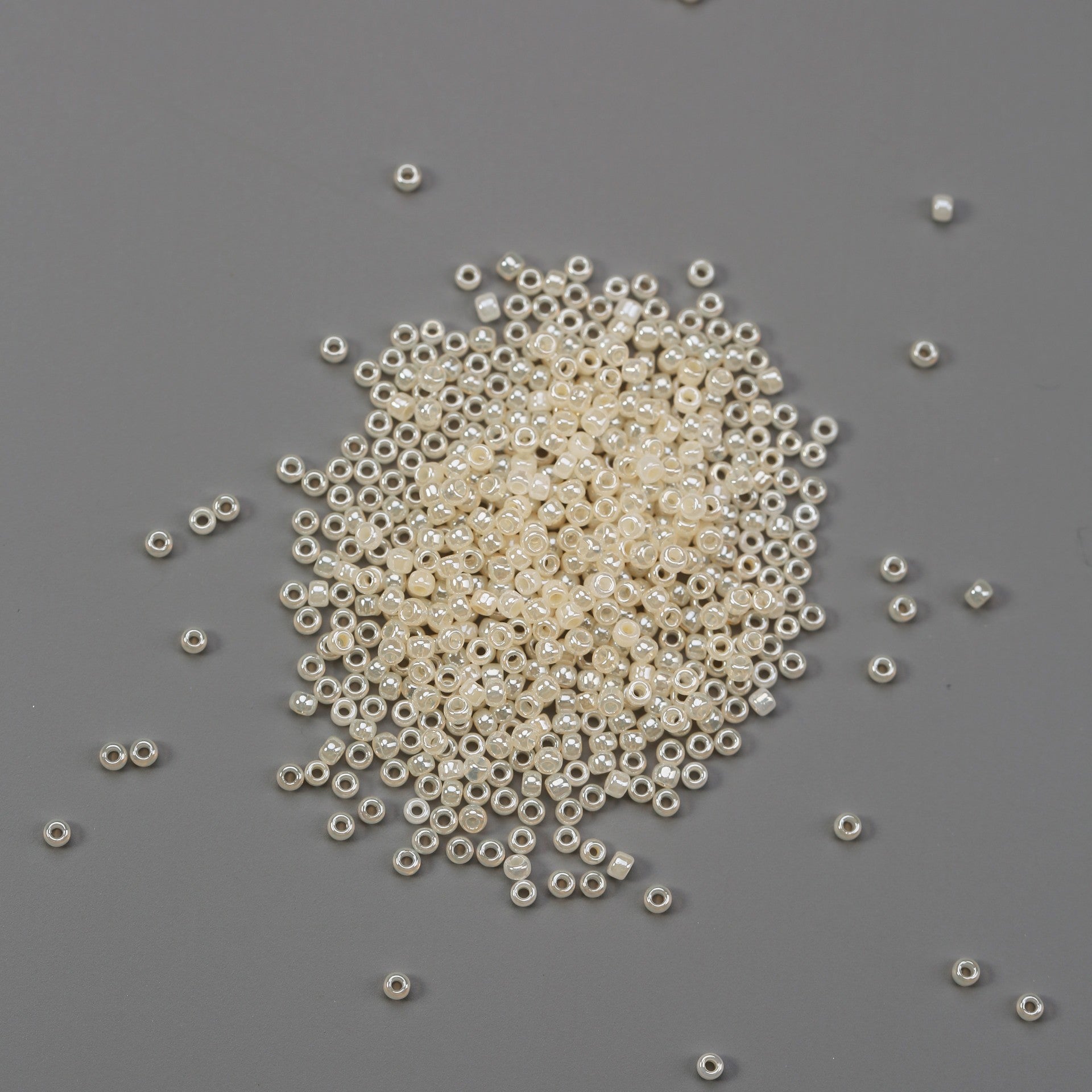 Make your own jewellery and embellish your craft projects with these cream glass seed beads. Each measures 2mm and the pack contains approximately 300 beads, easy to attach to projects using thread or glue to add some shimmer. Also perfect for wiring on or combining with other beads to create your own jewellery.