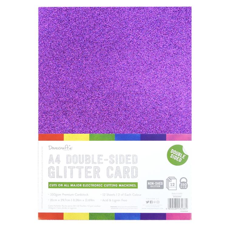 Take your glitter die cuts to the next level with the Rainbow Brights A4 Double Sided Glitter Card from Dovecraft! This 350gsm no shed glitter cardstock is ideal for using with both manual and electronic cutting machines and because its double sided, its perfect for 3D projects, including party decorations, gift wrap, and DIY home décor. With six bright colours in every pack, you'll find 100s of ways to use this rainbow of glitter card to embellish your paper crafts!