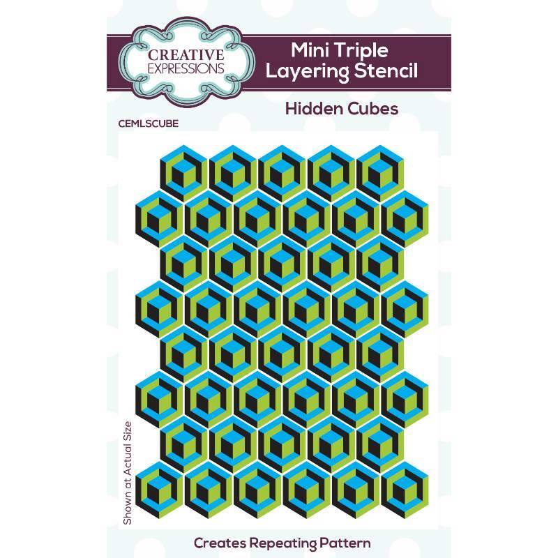 Creative Expressions Hidden Cubes Mini Triple Layering Stencil 4 in x 3 in Set of 3 (CEMLSCUBE)