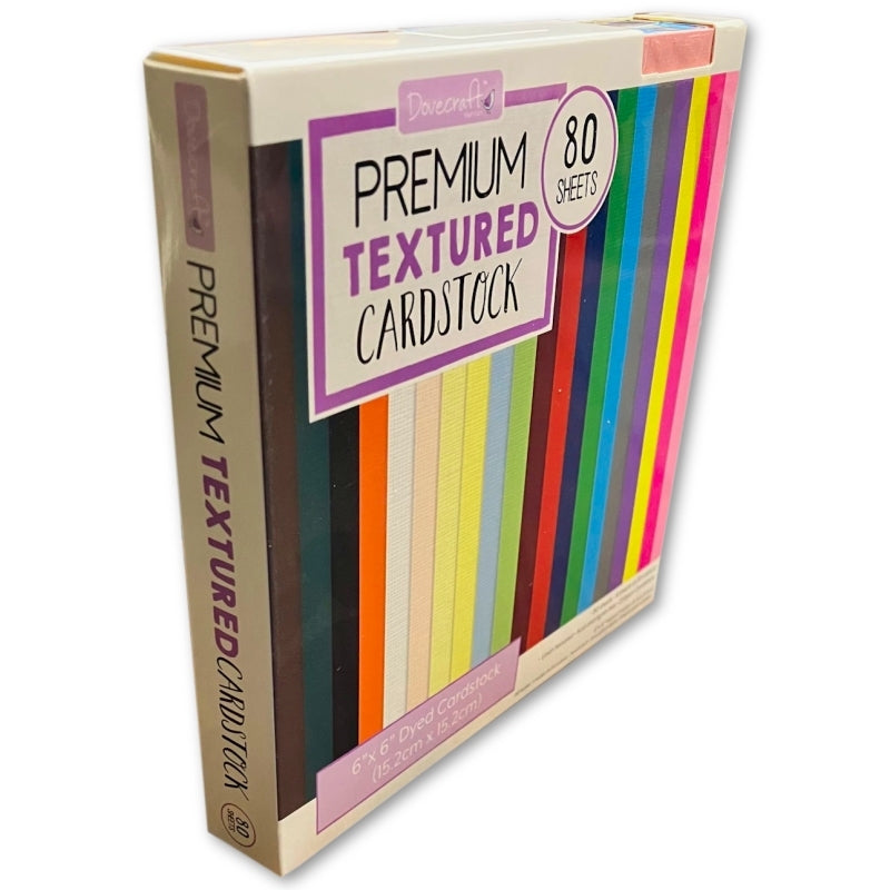 Dovecraft 6x6" (15.2 x 15.2cm) premium linen-textured cardstock stack containing 4 sheets each of 20 colours - 80 sheets in total.