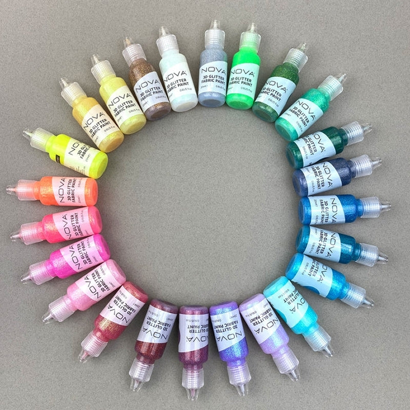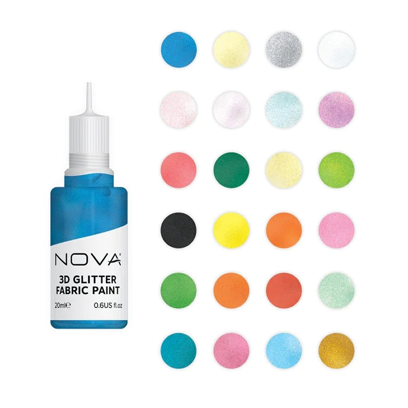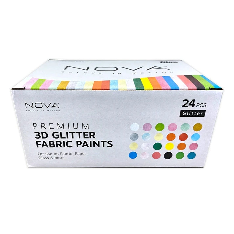 Nova 24 3D Glitter Fabric Paints (NVMXM014)