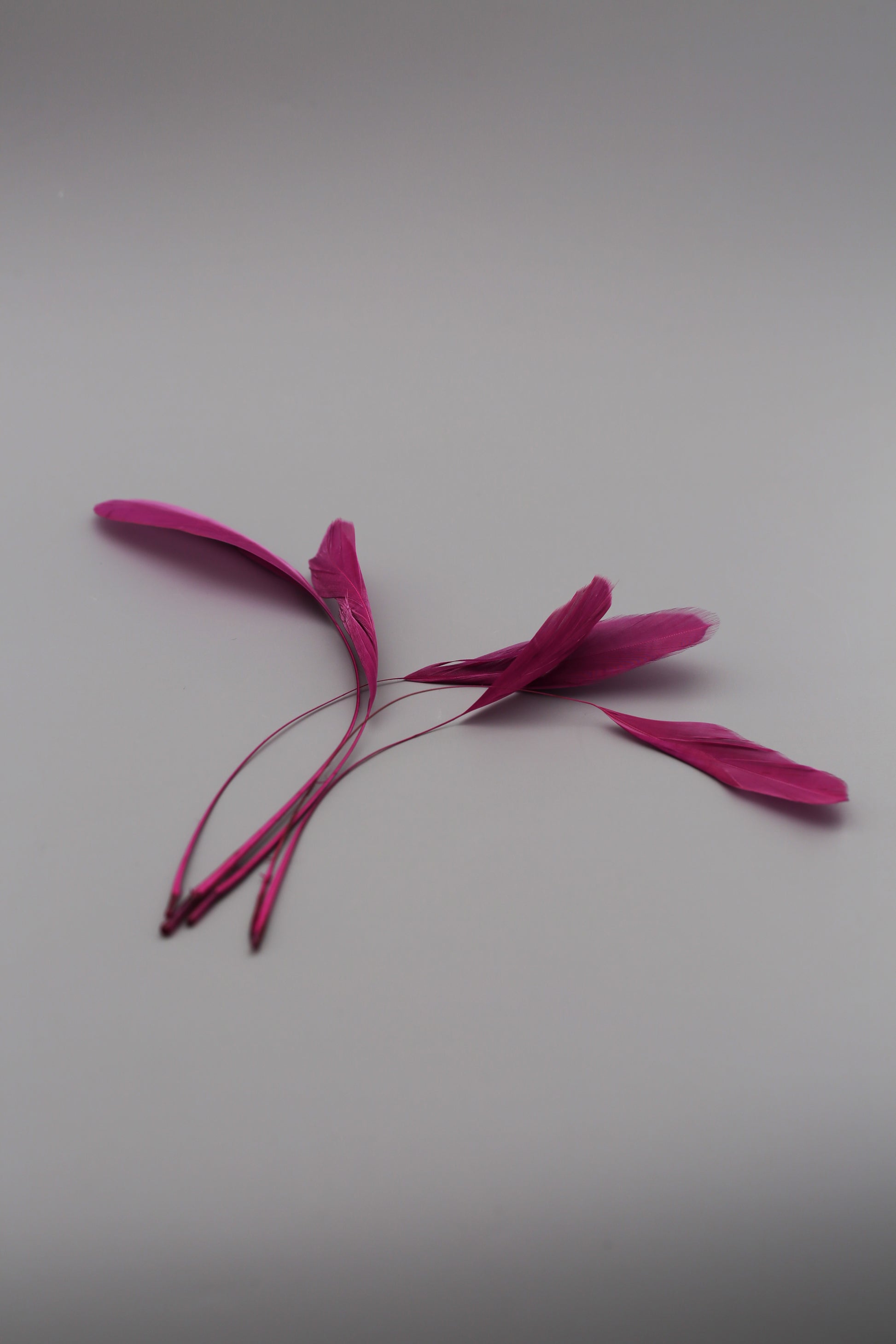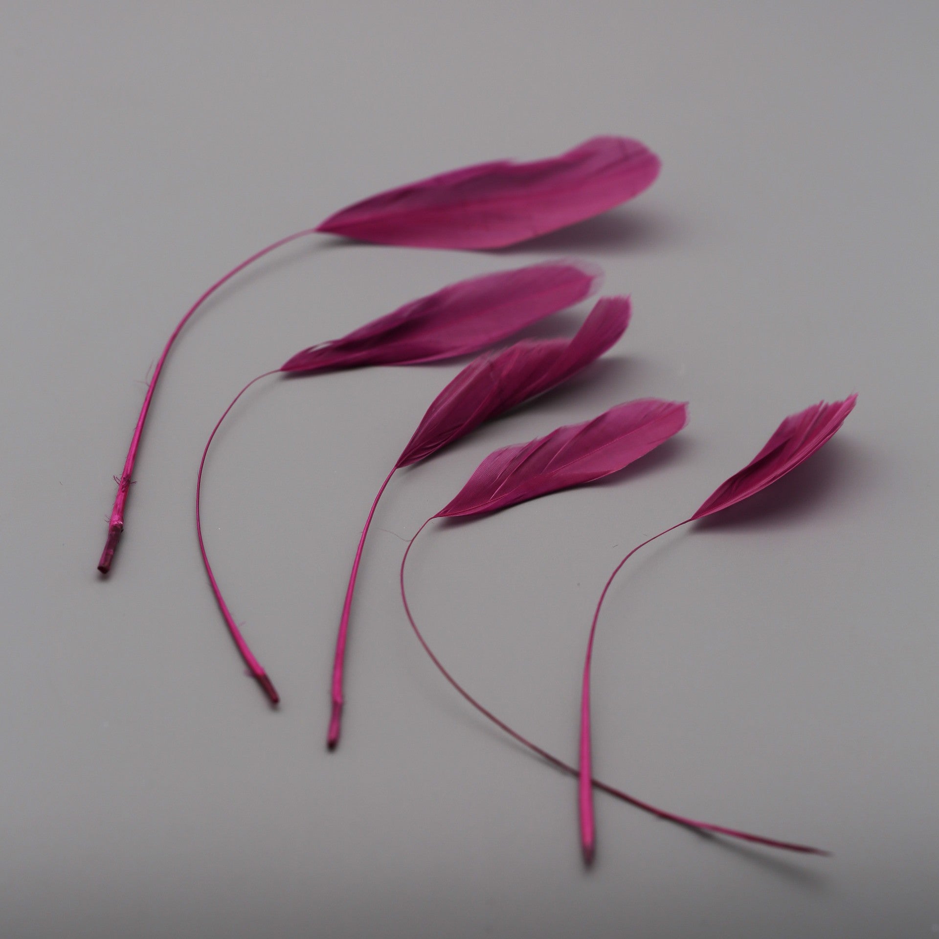 These stunning and elegant feathers are ideal for adding detail to your craft projects. They would be perfect for use in card making and scrapbooking, and even to add to garments, costumes and hats. They can be sewn, wired or glued for easy attachment. The plum colour is perfect for pink, red and purple toned projects. They are sold in packs of 5 and approximately measure 16cm long but this can vary slightly.