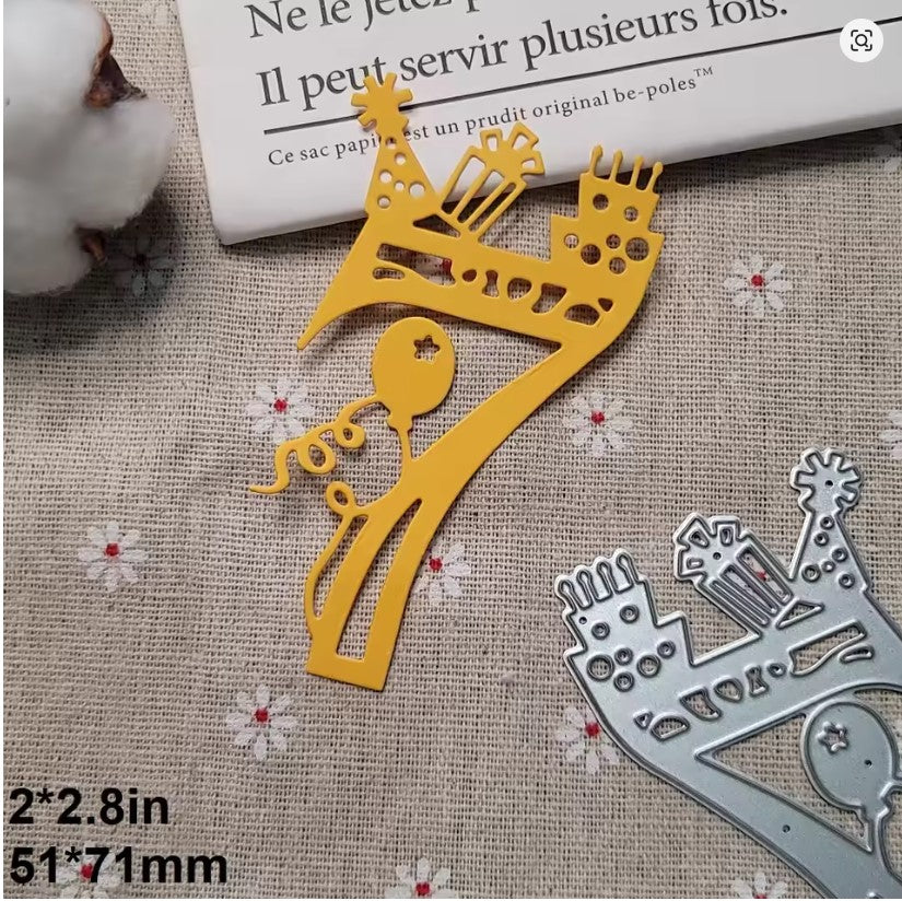 A lovely decorative number 7 with filigree design decorated with balloon, streamers, cake, party hat and gift. Perfect for birthday and anniversary cards. Measures 54mm x 95mm