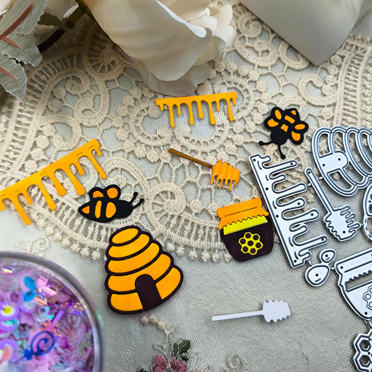 Printable Heaven Large Cutting Die - Bees and Honey (14pcs) (A132)