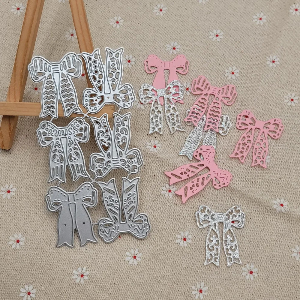 Instantly add elegant, handcrafted flair to your DIY projects with these premium bow cutting dies. Featuring 6 different designs perfect for embellishing cards, scrapbook pages and more. Each bow measures approximately 40mm wide and 50mmm tall. Fits most personal die-cutting machines.