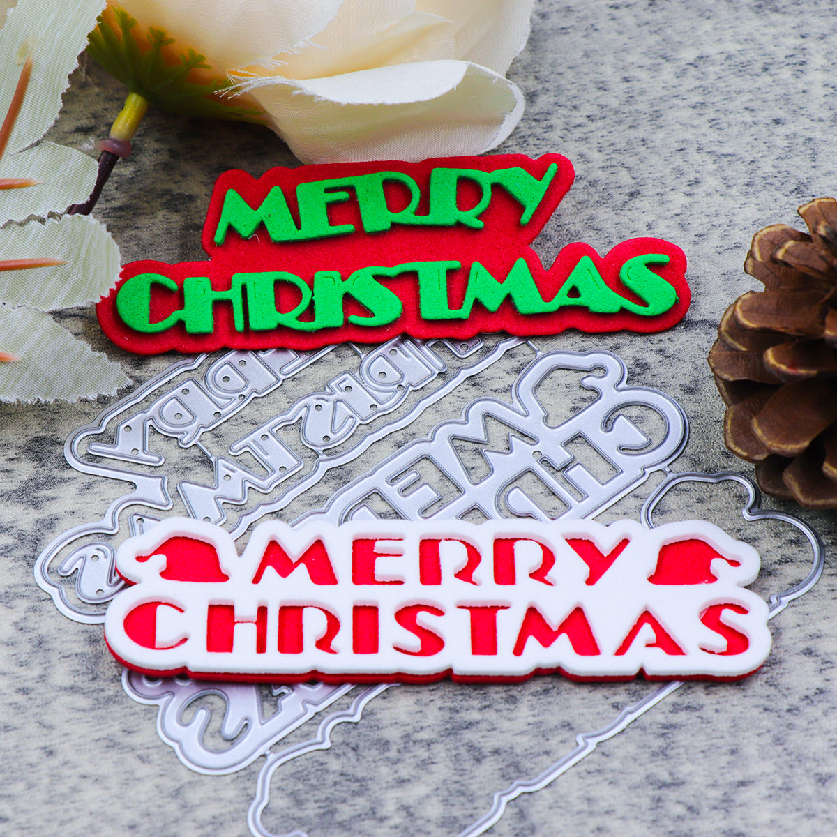 Elevate your holiday creations and make every project a work of art with the Merry Christmas Cutting Die. Whether you're an experienced crafter or just starting out, this versatile tool will help you bring your festive visions to life with professional-quality results. Measuring 62mm by 65mm. Fits most personal die-cutting machines.