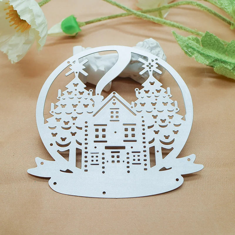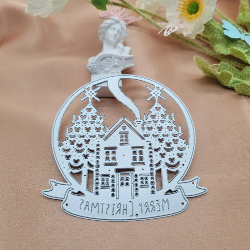 Bring the warmth and wonder of the holiday season to life with our Merry Christmas House and Tree Cutting Die. Featuring a winter house scene in a circle with a banner that reads 'Merry Christmas'. Crafted from durable steel, these precision-cut dies make it simple to add a touch of Christmas cheer to all your DIY projects. Measuring 107mm by 107mm. Fits most personal die-cutting machines.