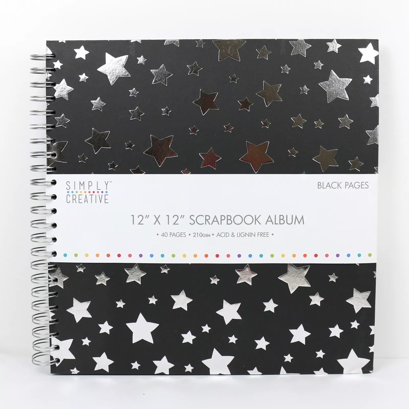 Add more than just a bit of twinkle and shimmer to your most cherished memories with this 12x12 scrapbook album, embellished with silver foiled stars. Contains 40 black sheets, 210GSM, with spiral binding.