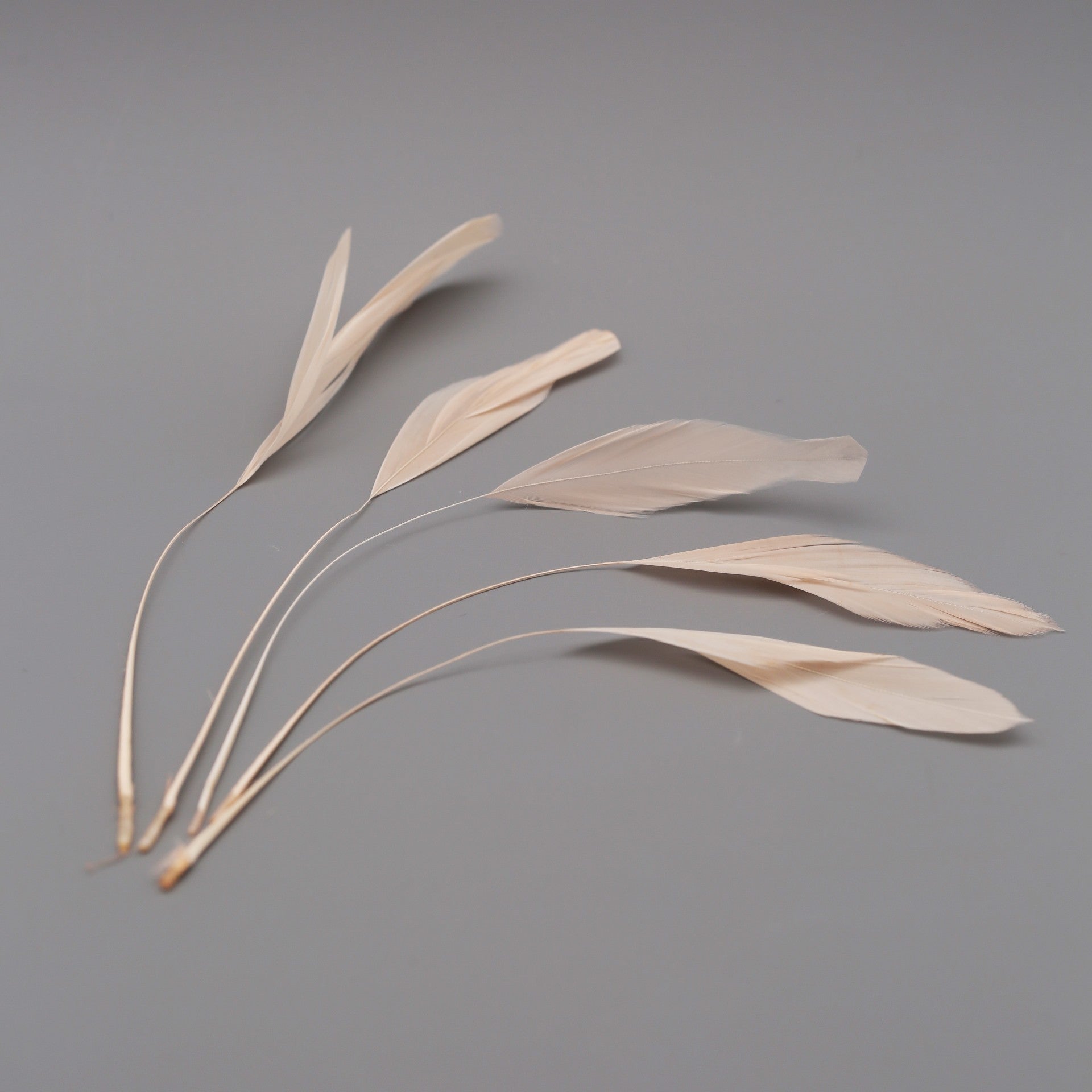 These stunning and elegant feathers are ideal for adding detail to your craft projects, they would be ideal to use in card making and scrapbooking and even to add to garments, costumes and hats. They can be sewn wired or glued for easy attachment, the soft pink colour is perfect for pink toned projects. They are sold in packs of 5 and approximately measure 16cm long but this can vary slightly.