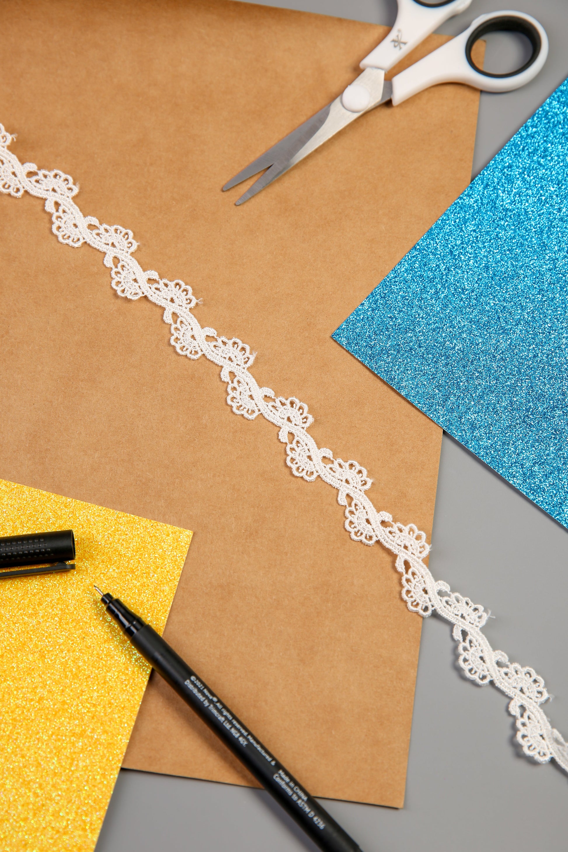 Add some ditsy charm to your crafting with this dainty wavy lace edge, it can easily be secured by gluing or sewing allowing it to be used for a variety of projects including embellishing textiles or adding texture to your paper crafting. Mesures approximately 2cm wide from widest to widest point.